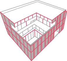 四周を囲むバランスの良い耐震壁で自由な間仕切を担保
